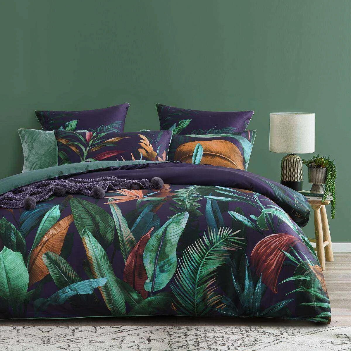 Please note – Printed design is asymmetrical, with heaviest design portion bottom (looking at quilt cover) and as the print move higher, print thins out becoming more scarce leaving a plain purple fabric.